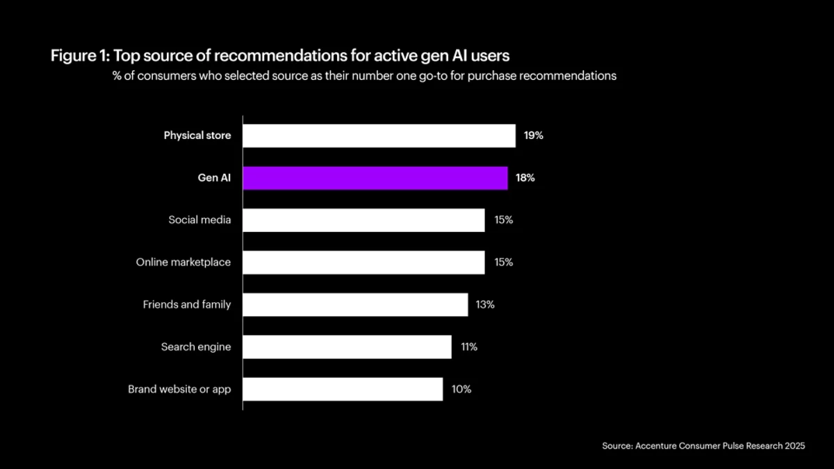 NEW YORK — Consumers are forging unexpected emotional ties with generative AI (gen AI), reshaping how they shop. According to Accenture’s 2025 Consumer Pulse Survey, more than one-third (36%) of active gen AI users now consider the technology “a good friend,” with 93% relying on it for personal development advice and 1 in 10 calling it their most trusted source for purchase decisions.