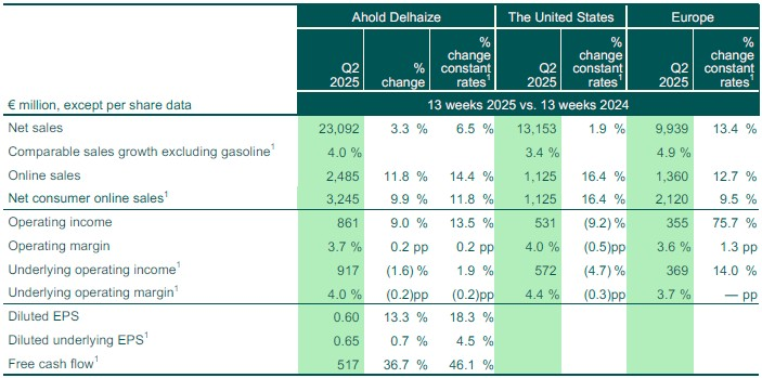 “I am pleased to report solid second quarter performance, with strong sales growth supported by positive volumes in both regions. In an environment where customers prioritize value and convenience, our Growing Together strategy stands out as a key strength. Our brands’ unwavering commitment to delivering exceptional customer value has enabled us to maintain or improve our market positions and continue to drive momentum in growth,” said Frans Muller, President and CEO of Ahold Delhaize.