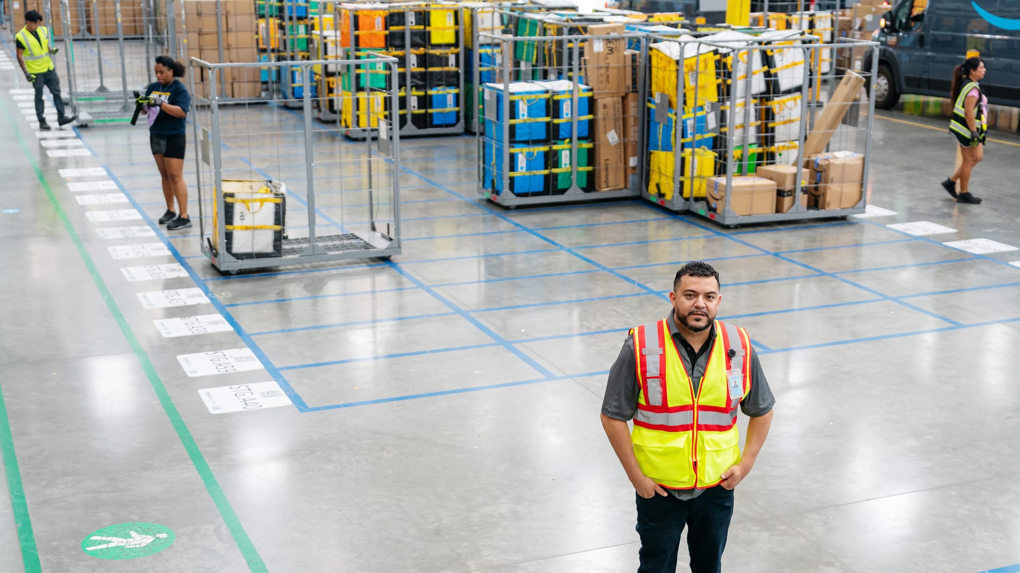 During Prime Day, the scale of operations grows significantly. “We’re seeing close to 500 to 600 people—drivers, employees, leadership, and support teams such as our janitorial team—coming into the building at different times throughout the day,” Garcia says of his delivery station.