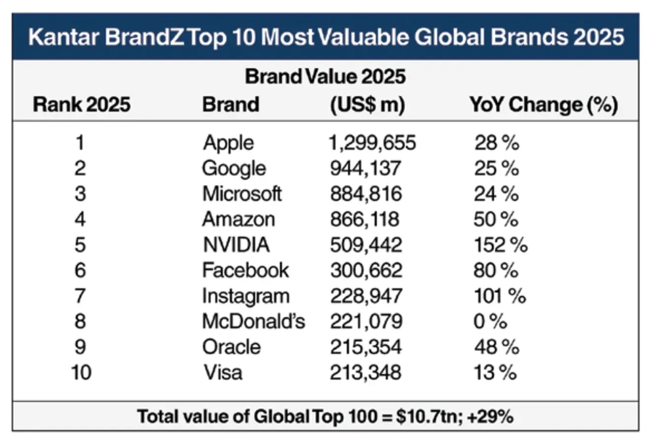 Brands are not static logos or advertising taglines — they are perceptions, promises and emotional shortcuts stored in consumers’ minds. The companies that continue to rise in the BrandZ rankings are those that invest in maintaining and evolving those perceptions. Whether it’s Apple’s seamless ecosystem, Amazon’s frictionless commerce or McDonald’s universally familiar experience, these brands win because they deliver consistency and surprise.