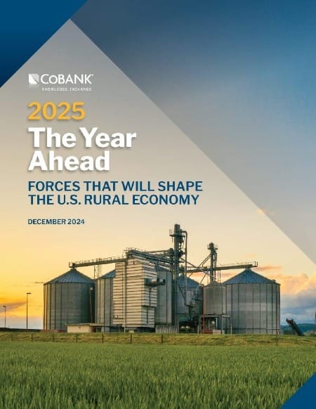 DENVER – CoBank has unveiled its comprehensive 2025 year-ahead report, detailing the economic forces poised to shape the U.S. rural economy. While the broader U.S. economy continues to thrive with solid growth, low unemployment, and moderating inflation, rural industries face unique challenges stemming from federal policy changes and lingering economic uncertainties, according to The Year Ahead: Forces That Will Shape the U.S. Rural Economy in 2025