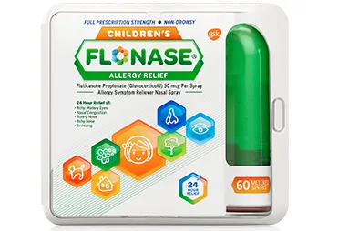Children’s Flonase is an over-the-counter nasal spray that has been approved to treat allergy symptoms including runny nose, sneezing, itchy nose, congestion, and itchy, watery eyes.