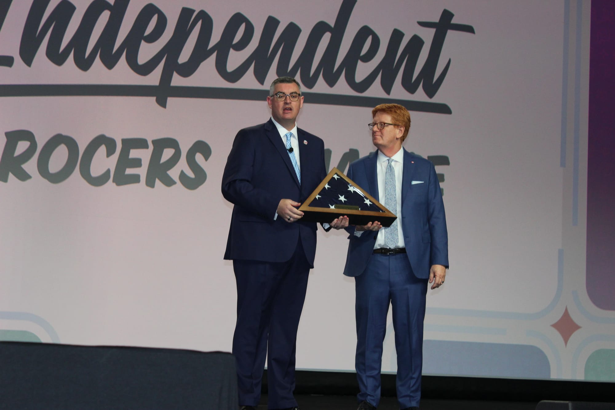 One of the evening’s highlights was the celebration of the Independent Grocers Alliance’s 100th anniversary. John Ross, IGA president and CEO, took the stage after NGA presented a special congressional recognition and an American flag flown over the U.S. Capitol in IGA’s honor.
