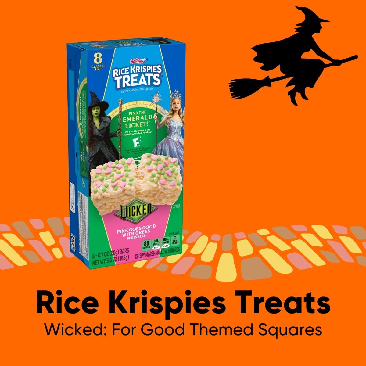 - Rice Krispies Treats is collaborating with Universal Studios and Fandango for a Wicked-inspired treat featuring shaped sprinkles for the first time. Fans can find “Emerald Tickets” in select packs for a chance to win streaming access to Wicked Part 1 and movie tickets to Wicked: For Good.