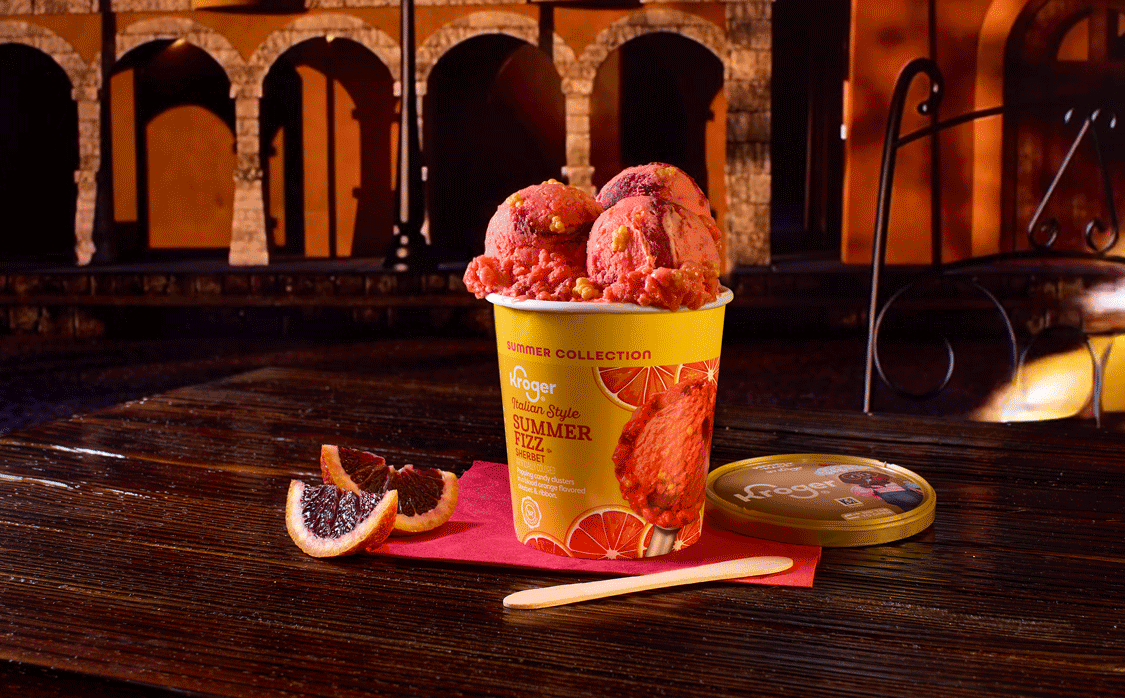 - Italian Style Summer Fizz: Transporting taste buds to a carefree moment in the Euro summer sun, this blood orange-flavored sherbet is loaded with popping candy clusters and a blood orange-flavored ribbon.