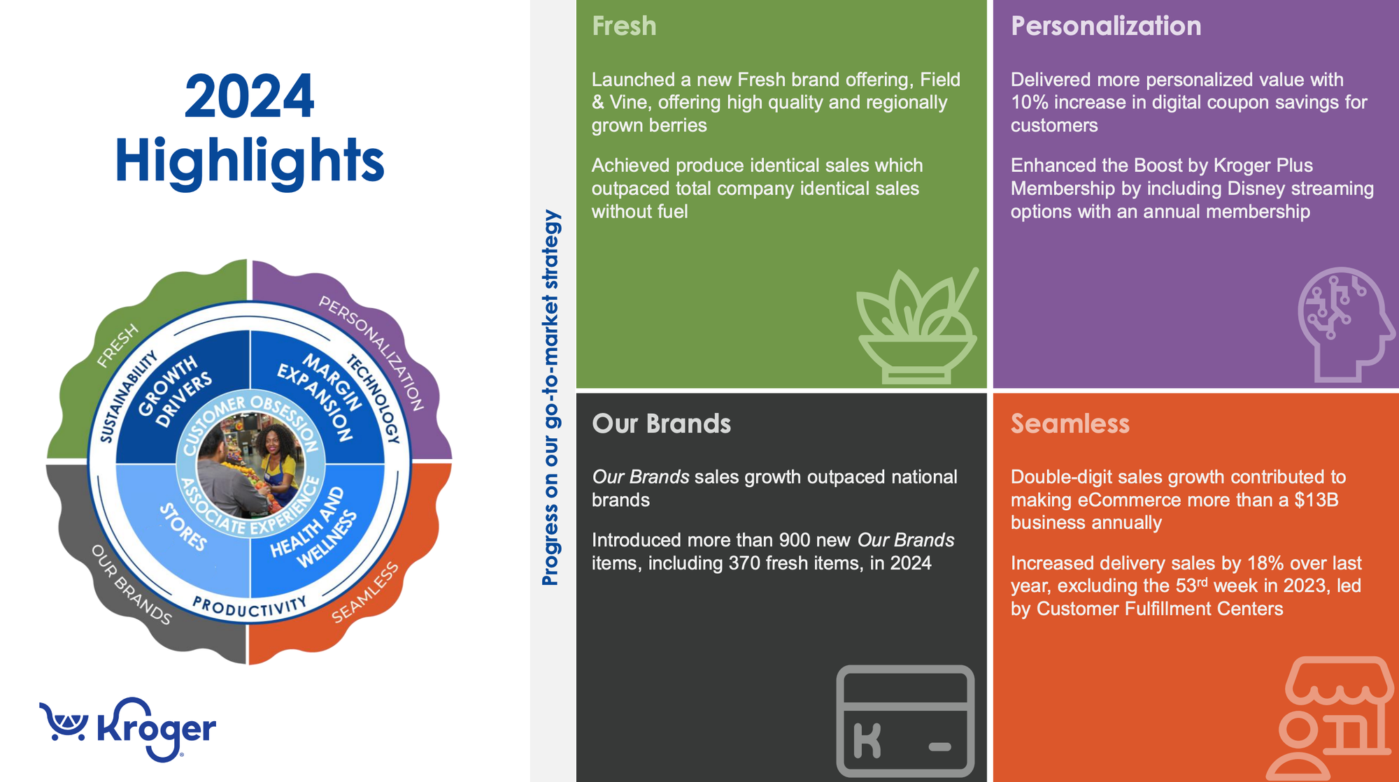 “Kroger is operating from a position of strength, delivering fourth quarter results that came in ahead of expectations due to the strength of our model and the disciplined execution of our teams. We enter 2025 with positive momentum, focused on delivering an incredible customer experience through great quality at low prices.”