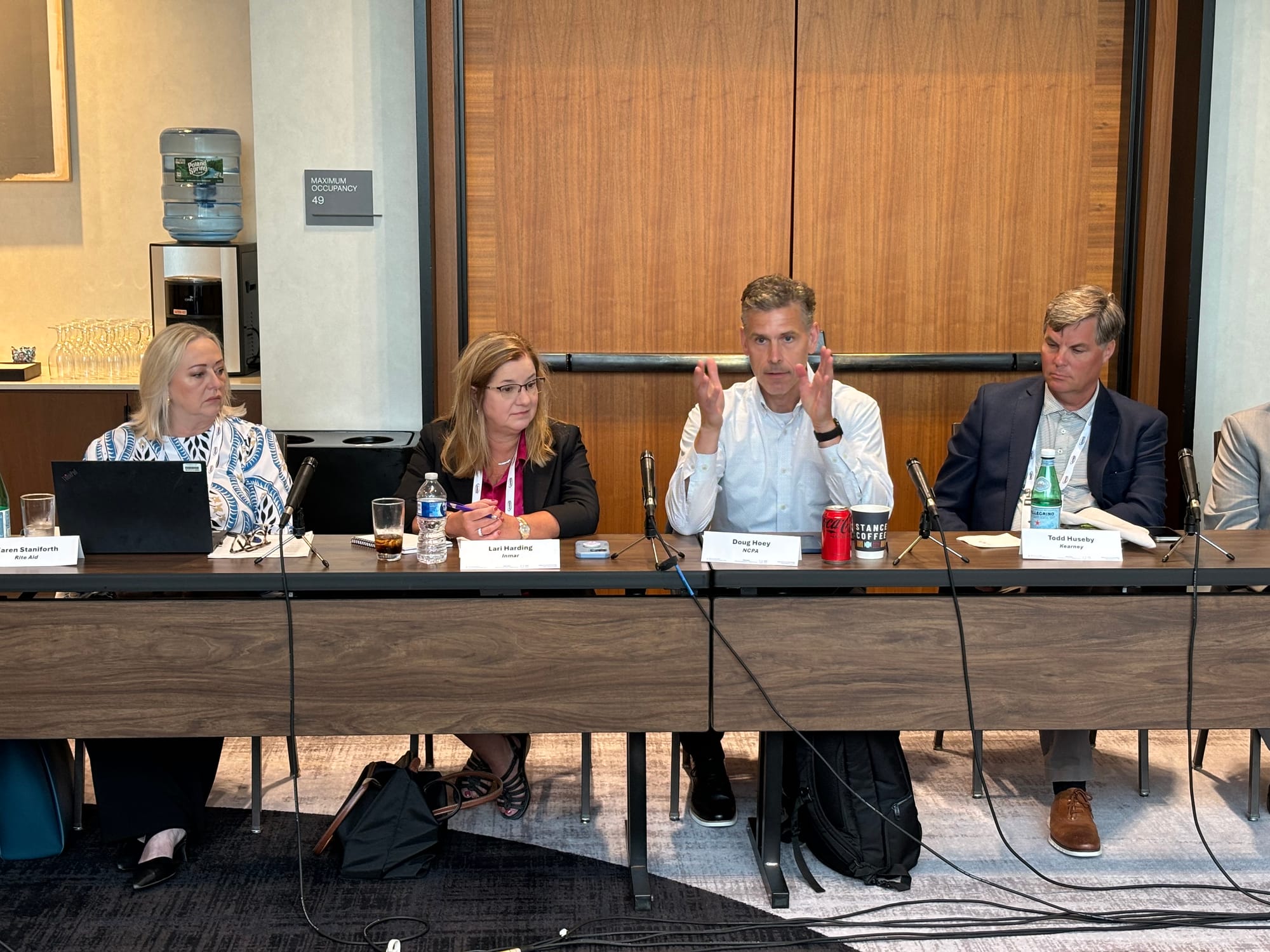 Panelists included Kevin Host, senior vice president of pharmacy at Walmart and current chairman of the National Association of Chain Drug Stores; NACDS president and CEO Steve Anderson; Doug Hoey, CEO of the National Community Pharmacists Association; Crystal Lennartz, president of Health Mart and Health Mart Atlas; Dain Rusk, vice president of pharmacy at Publix; Rina Shah, senior vice president of pharmacy growth at Walgreens; and Karen Staniforth, chief pharmacy officer at Rite Aid.