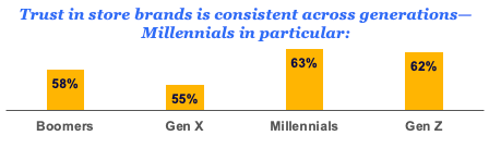 In fact, 59% of consumers trust store brands precisely because the retailer endorses them. Branded products also shine online, where brand familiarity drives clicks and conversions. Retailers can maximize this by curating omnichannel experiences—bundled promotions, intelligent product placement, and personalized recommendations—that use the strength of national brands to lift the entire shelf.
