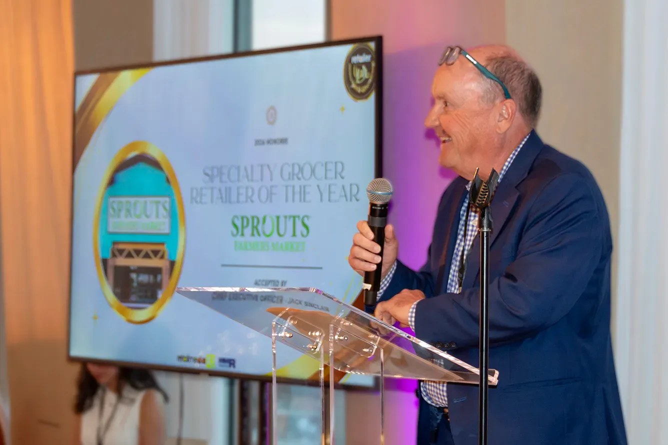 Sprouts Farmers Market was named Specialty Grocer of the Year for its focused approach on health-conscious consumers and its distinctive merchandising strategy. The company has sharpened its positioning around fresh, healthful products, emphasizing organic, gluten-free, and non-GMO options. Its store format, featuring fresh produce and open layouts, supports that identity. CEO Jack Sinclair accepted the award.