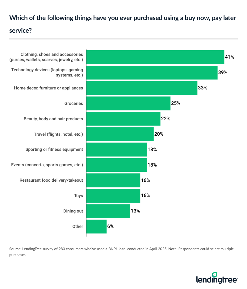 The survey, conducted earlier this month among 2,000 U.S. adults aged 18 to 79, found that 25% of BNPL users said they had used the loans to buy groceries, up from 14% in 2024 and 21% in 2023. At the same time, 41% of respondents reported making an overdue payment on a BNPL loan within the past year, up from 34% the previous year.