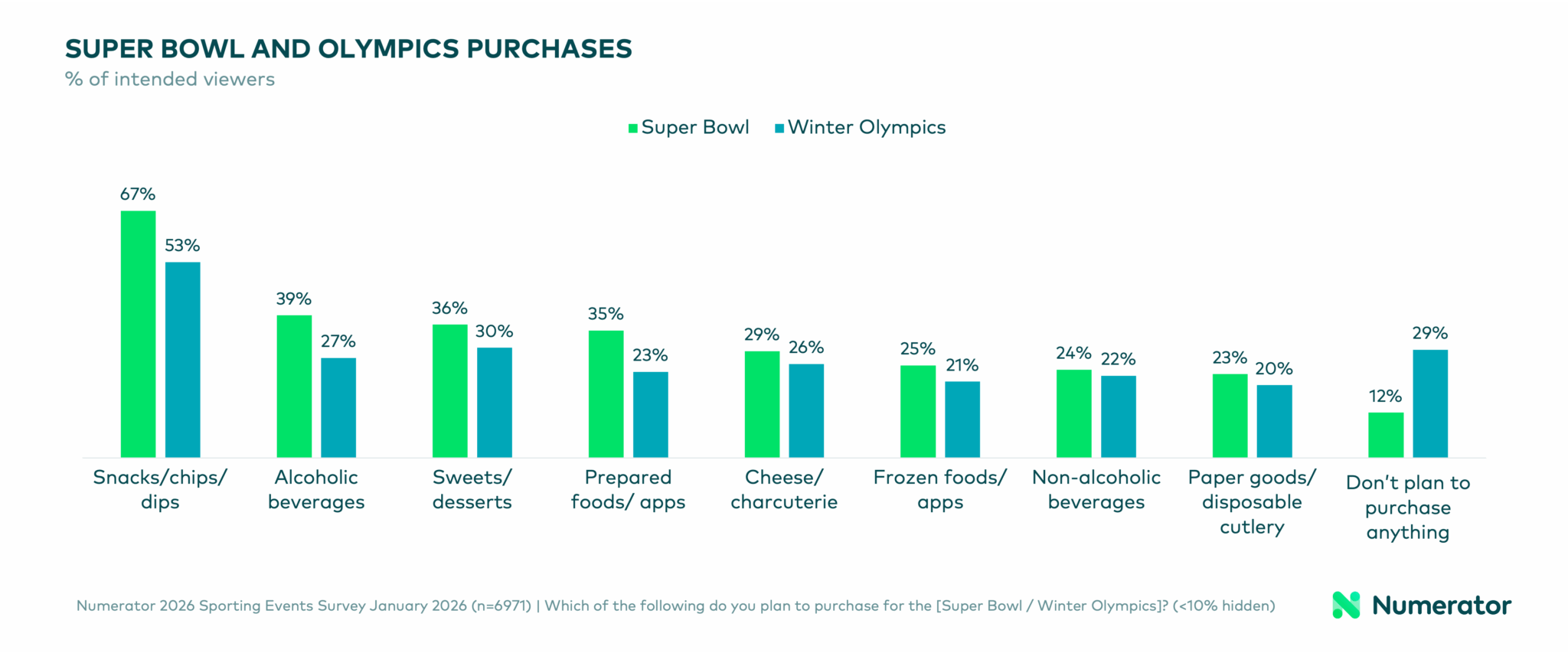 CHICAGO — According to a new analysis from Numerator, U.S. consumers are gearing up for very different viewing and shopping moments as two of the world’s biggest sporting events align on the same weekend. The 2026 Winter Olympics begin Friday, Feb. 6, followed by Super Bowl LX on Sunday, Feb. 8, creating a rare clash that matters for retailers, brands, and foodservice operators.