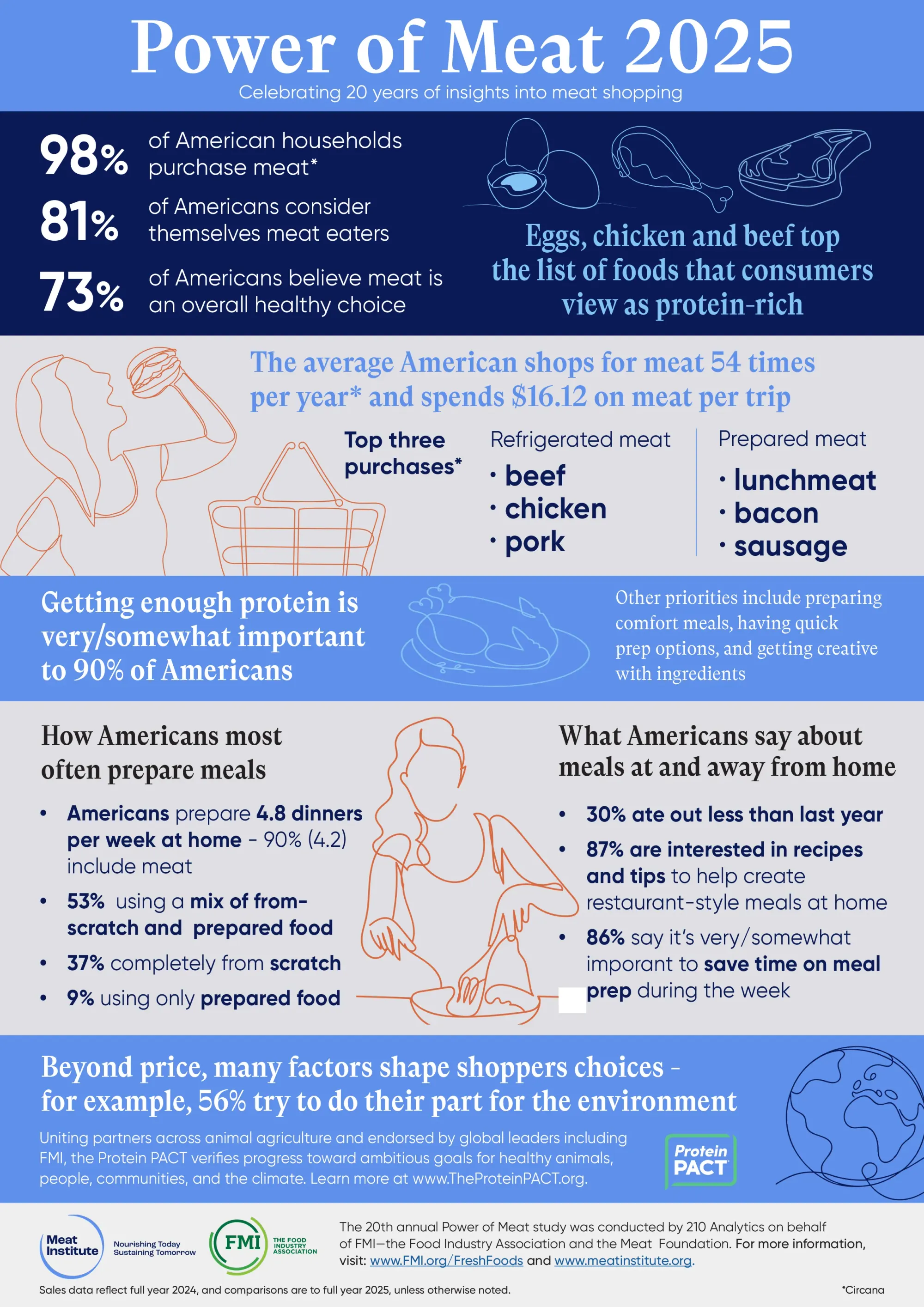 The Power of Meat study was conducted by 210 Analytics on behalf of FMI and the Meat Foundation, with sponsorship from CRYOVAC® Brand Food Packaging. The sales and shopping behavior data reflect the 52 weeks ending December 29, 2024.
