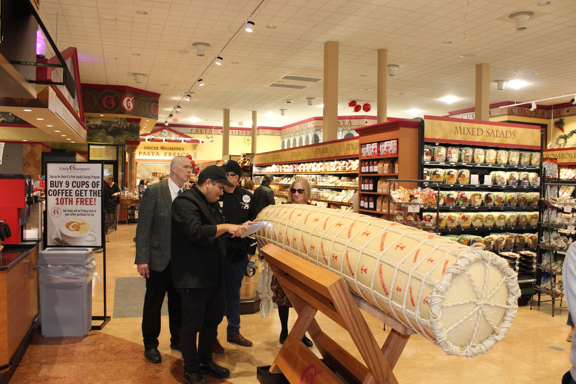 The store opening brought much fanfare, including a ribbon-cutting ceremony, a 900-pound fresh provolone cheese and custom-made-to-order cannolis for sampling. The Long Island food bank, Island Harvest Food Bank, was also on hand to accept Uncle Giuseppe’s donation of 200 Thanksgiving turkeys.