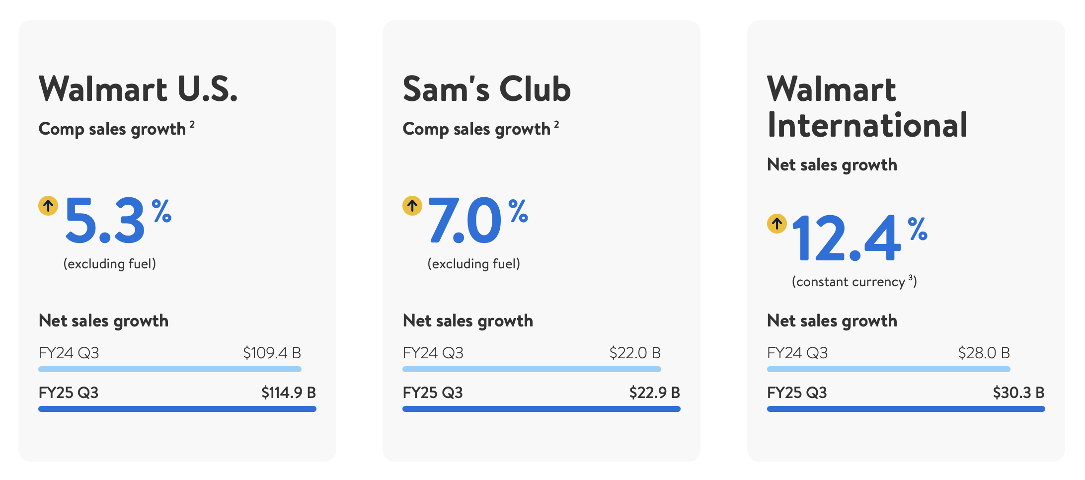 - Resilience in Groceries: Grocery sales, which constitute 60% of Walmart U.S.'s revenue, saw mid-single-digit growth, driven by increased demand for pantry staples.